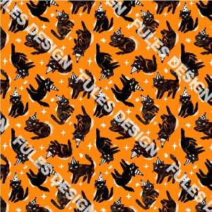 斜めに並べたクロネコ ハロウィーン/オレンジ TT-3375 こちらを威嚇するクロネコ。地色はオレンジの濃淡。オレンジの濃淡とクロネコと"Noir Chat"と言う文字だけの大人っぽいハロウィーン、ネコ柄です。在庫は在庫は110cm×...