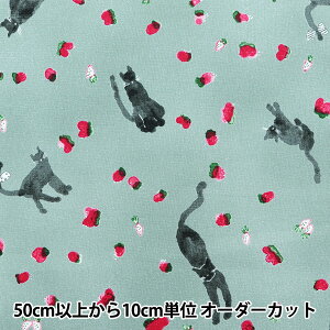 【数量5から】生地 『シーチング コットンプリント おしゃれ黒猫 グリーン CR8878-1C』 黒猫といちご柄のシーチング生地♪ 水彩タッチの可愛い黒猫と、いちご柄のシーチング生地です♪ シーズンを通して...