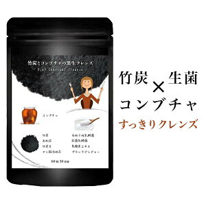 竹炭とコンブチャの黒生クレンズ 名称炭含有加工食品 原材料名難消化性デキストリン(国内製造)、還元麦芽糖水飴、澱粉、竹炭、ヤシ殻活性炭、赤松炭、殺菌乳酸菌、有胞子性乳酸菌、黒酢もろみ末、黒大豆種皮エキス末、発酵黒タマネギ末
