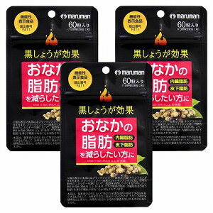 【機能性表示食品】黒しょうが効果 60粒(30日分)×3個セット 【マルマン maruman】おなかの脂肪(内臓脂肪、皮下脂肪)を減らしたい方に ブラックジンジャー由来ポリメトキシフラボン配合 ダイエットサポートサプリメント おなかの...