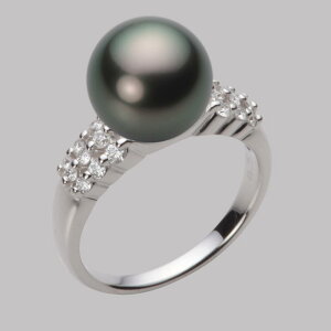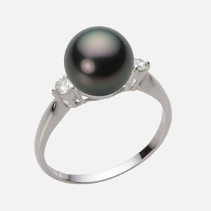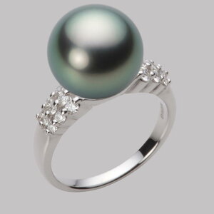 照りが良くキズが少ない、高品質なタヒチ黒蝶真珠12mm。グリーンカラーが優雅な雰囲気を醸し出すブラックパールプラチナリングです。両脇についたダイヤモンドがシャープに引き締めます。フォーマルにカジュアルにおしゃれ使いにと幅広