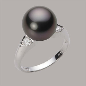 真珠を引き立てるためにセンターの左右にトリリアントカットのダイヤモンドをあしらったデザインのリング。ダイヤモンドと真珠が輝きあい、しっかりとしたアームが指もとに存在感と華やかさを上品に演出します。真珠のサイズは10mm。こ