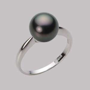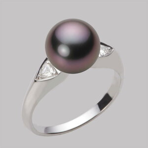 真珠を引き立てるためにセンターの左右にトリリアントカットのダイヤモンドをあしらったデザインのリング。ダイヤモンドと真珠が輝きあい、しっかりとしたアームが指もとに存在感と華やかさを上品に演出します。真珠のサイズは9mm。こ
