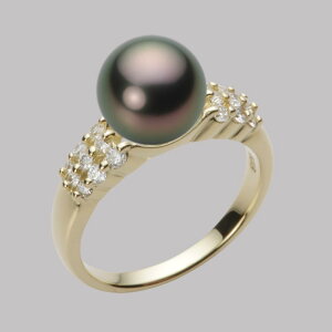 真珠を引き立てるためにセンターの左右にトリリアントカットのダイヤモンドをあしらったデザインのリング。ダイヤモンドと真珠が輝きあい、しっかりとしたアームが指もとに存在感と華やかさを上品に演出します。真珠のサイズは9mm。こ
