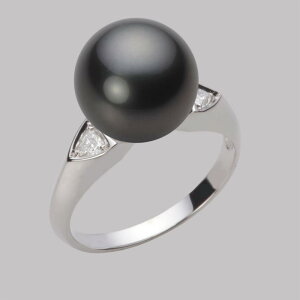 真珠を引き立てるためにセンターの左右にトリリアントカットのダイヤモンドをあしらったデザインのリング。ダイヤモンドと真珠が輝きあい、しっかりとしたアームが指もとに存在感と華やかさを上品に演出します。真珠のサイズは11mm。こ
