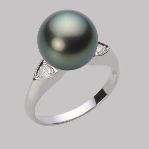 真珠を引き立てるためにセンターの左右にトリリアントカットのダイヤモンドをあしらったデザインのリング。ダイヤモンドと真珠が輝きあい、しっかりとしたアームが指もとに存在感と華やかさを上品に演出します。真珠のサイズは10mm。こ