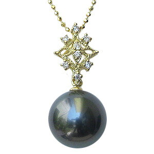 シックな色合いが印象的なタヒチ黒蝶真珠。グリーン系ブラックパールとダイヤモンドとスタイリッシュなデザインの組み合わせが優雅でエレガントです。さりげなく胸元をドレスアップします。普段使いやおしゃれ使い、オフィスシーンな