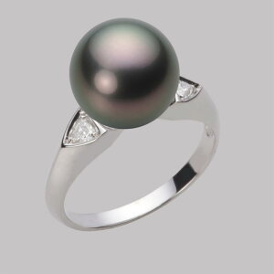真珠を引き立てるためにセンターの左右にトリリアントカットのダイヤモンドをあしらったデザインのリング。ダイヤモンドと真珠が輝きあい、しっかりとしたアームが指もとに存在感と華やかさを上品に演出します。真珠のサイズは10mm。こ