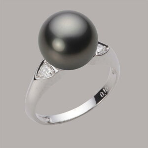 真珠を引き立てるためにセンターの左右にトリリアントカットのダイヤモンドをあしらったデザインのリング。ダイヤモンドと真珠が輝きあい、しっかりとしたアームが指もとに存在感と華やかさを上品に演出します。真珠のサイズは9mm。こ
