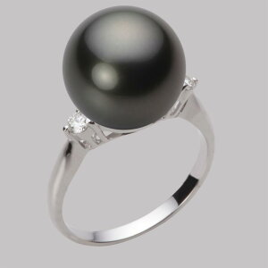 送料無料 ギフト対応 真珠パール リング 指輪 奥深い輝きの11mmタヒチ黒蝶真珠。両サイドに2石のダイヤモンドが 煌めくシンプルなブラックパールリングです。手元を優雅に上品に演出 します。冠婚葬祭は...