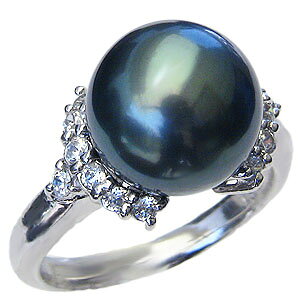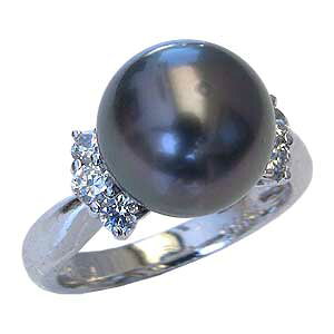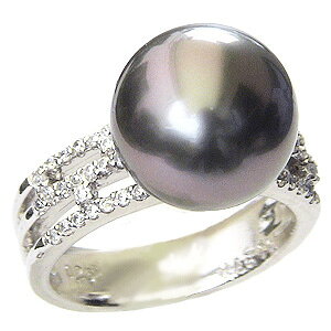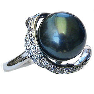 送料無料 ギフト対応 真珠パール リング 指輪 照りが良くキズが少ないタヒチ黒蝶真珠11mm煌めくダイヤモンドラインが贅沢なブラックパールリングです。手元を優雅にスタイリッシュに演出します。カジ...