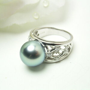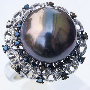 送料無料 ギフト対応 真珠パール リング 指輪 照りが良くキズが少ないタヒチ黒蝶真珠11mm。煌めくダイヤモンドラインが贅沢なブラック パールリングです。手元を優雅にスタイリッシュに演出します。カジュアルにおしゃれ使いに...