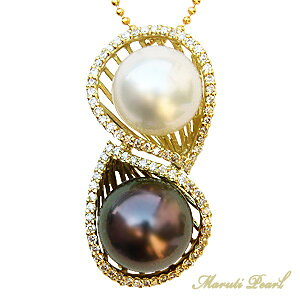 南洋白蝶真珠 ペンダントトップ ゴールド ダイヤモンド 上品な輝きと存在感があふれる南洋白蝶真珠とタヒチ黒蝶真珠。ゴールドにダイヤモンドが煌くペンダントトップです。マルチカラーのホワイト系とグリーン系のパ
