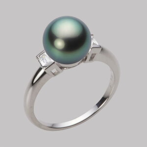 鮮やかなグリーンが印象的な10mmのタヒチ黒蝶真珠。ダイヤモンドが両方の腕に4石づつの埋め込まれたシンプルタイププラチナリングです。シックなブラックパールとダイヤモンドが上品に輝きスタイリッシュなデザインです...