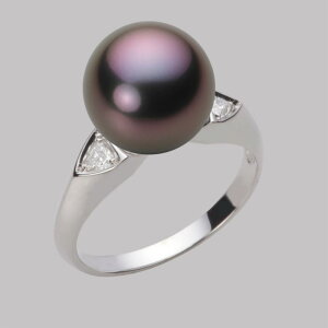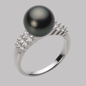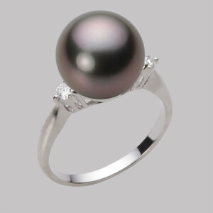 上質な11mmタヒチ黒蝶真珠の奥深い上品なグリーン。両サイドにさりげなく付いたダイヤ モンドがブラックパールの美しさを引き立たせるように付いたリングです。タヒチ黒真珠の神秘的な色合いを実感するシックな指輪ですよ。11mmのボリュ