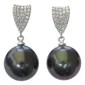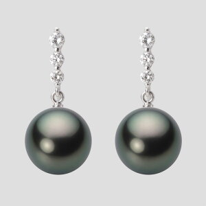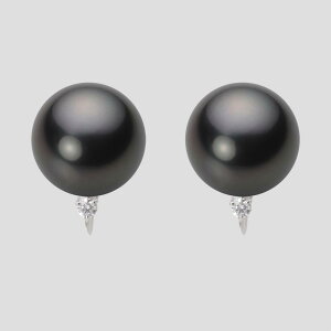 ダイヤモンドと真珠の存在感で耳もとを印象付け、大人の女性を演出します。真珠のサイズは12mm。このサイズはタヒチ産黒蝶真珠のやや大きめサイズです。色はブラ