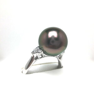 送料無料 ギフト対応 真珠パール リング 指輪 照りが良く奥深いグリーンカラーが印象的な11mmタヒチ黒蝶真珠の指輪です。左右反対についたダイヤモンドがスタイリッシュなデザイン優雅におしゃれに手元を飾り立てます...