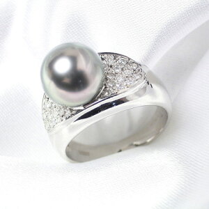 送料無料 ギフト対応 真珠パール リング 指輪 照りが良くキズが少ないタヒチ黒蝶真珠12mm煌めくダイヤモンドラインが贅沢なブラックパールリングです。手元を優雅にスタイリッシュに演出します。カジ...