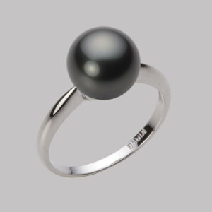 こちらの指輪は、その独特な色合いと上品な輝きで、特別な日の装いを一層引き立てます。 深みのあるグリーンブラックの黒蝶真珠が使用されており、その神秘的な色彩が目を引きます。 真珠の隣には、繊細に配置されたダイヤモンドが輝