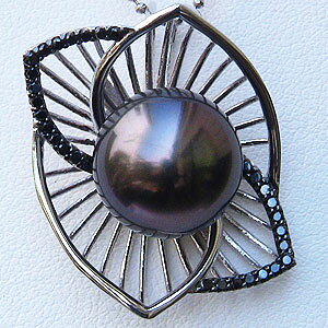 シックな色合いで美しく輝く12mmのタヒチ黒蝶真珠を使ったペンダントトップです。ブラックダイヤ&ダイヤモンドの入ったアンティークデザインとの組み合わせが優雅で贅沢なフォルムです。カジュアルからちょっとしたパーティーにも似合います...