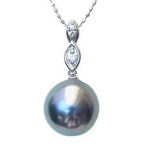 真珠の種類 黒蝶真珠 真珠のサイズ 約9.5mm 真珠の色 グリーングレー 真珠の形 ラウンド 真珠の光沢 A 真珠のキズ A 金具 Pt900 石 ダイヤモンド 0.27ct...