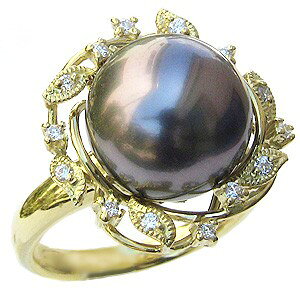 送料無料 ギフト対応 真珠パール リング 指輪 輝きが良くキズが少ないタヒチ黒蝶真珠12mm。その周りを煌めきながら走る ダイヤモンドラインが贅沢なブラックパールリングです。手元を優雅に演出しま す。...
