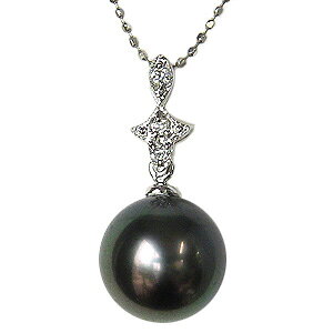照りの良いタヒチ黒蝶真珠とアンティーク風なデザインを組み合わせたペンダントトップです。2石のダイヤモンドがデザインの中に煌めき、黒真珠と共に上品に胸元を飾るタヒチブラックパールペンダントヘッドホワイトゴールドです...