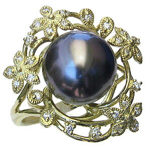 送料無料 ギフト対応 真珠パール リング 指輪 9mmのグリーン系タヒチ黒蝶真珠が動くたびに美しい輝きで揺れ見ているだけでも楽しい気分になる指輪です。リングのウデ部分は地金を惜しみなく使い、指な...