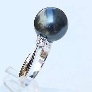 真珠パール リング 指輪 色と照りは当店で最高級のタヒチ黒蝶真珠です。シンプルなトライアングル形のダイヤモンドを真珠の両脇にセッティングしました流行に左右されずに長年使える指輪です。 真珠明細 ...