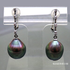 商品名:黒蝶真珠イヤリング/ 宝石名:黒蝶真珠/ 宝石詳細:10mmアップ (バロック)/ 素材:K18WG メレダイヤ0.08ct/2/ サイズ等:5.5g 縦約30mm/