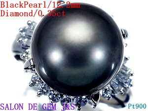 ★★★SALON DE GEM J&S【特選ジュエリー】★★★ ●上質な艶と照りの上質南洋ブラックパール(黒蝶真珠)12.2mm珠&良質天然ダイヤモンド総計0.35ctを素敵に宝飾した、高級Pt900リングを激安大処分致します...