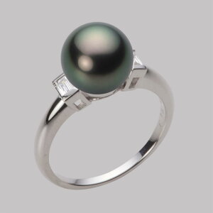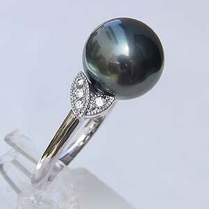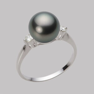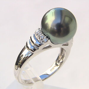 ギフト対応 真珠パール リング 指輪 9mmのタヒチ黒蝶真珠を使ったホワイトゴールドリングです。ダイヤモンドが煌めく上品なデザイングリーン系ブラックパールのお色目が美しい指輪です。真珠は6月の誕生石です...