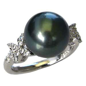送料無料 ギフト対応 真珠パール リング 指輪 輝きが良くキズが少ないタヒチ黒蝶真珠12mmその周りを煌めきながら走るダイヤモンドラインが贅沢なブラックパールリングです。手元を優雅に演出します。...