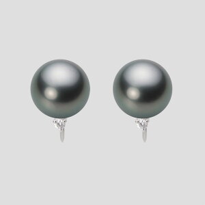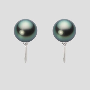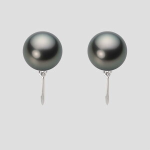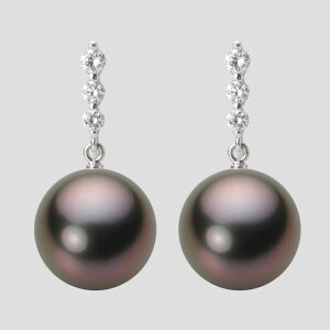 ダイヤモンドと真珠の存在感で耳もとを印象付け、大人の女性を演出します。真珠のサイズは12mm。このサイズはタヒチ産黒蝶真珠のやや大きめサイズです。色はブラ
