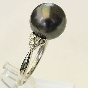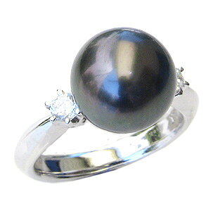 送料無料 ギフト対応 真珠パール リング 指輪 照り、巻き、キズがAランクのタヒチ黒蝶真珠です。両脇にダイヤモンドが3石ついた輝かしいリングです。 普段使いはもちろんパーティーシーンにも良く合います...