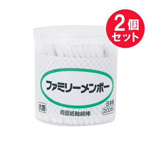 商品名ファミリーメンボー●内容量200本 ×2セット●商品説明お肌にやさしくタッチする両面紙軸綿棒●ご使用例1.水泳や入浴後の耳掃除やお子様の耳、鼻などのお手入れに。2.お化粧や、マニキュア落としなどに。●使用上・保管上の