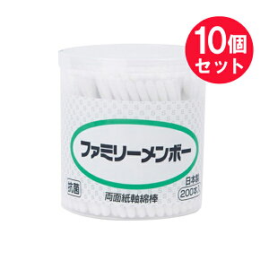 商品名ファミリーメンボー●内容量200本 ×10セット●商品説明お肌にやさしくタッチする両面紙軸綿棒●ご使用例1.水泳や入浴後の耳掃除やお子様の耳、鼻などのお手入れに。2.お化粧や、マニキュア落としなどに。●使用上・保管上の