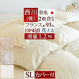 羽毛布団 シングル 2枚合わせ 西川 シングル 2枚合わせ 増量1.2kg 羽毛ふとん 抗菌 フランス産ホワイトダウン90% DP400 日本製 洗える 2枚合せ 二枚合わせ 羽毛掛け布団 オールシーズン...