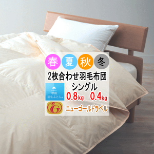 ギフト対応 ロイヤルゴールドラベル 2枚合わせ羽毛布団 (肌掛け布団+合掛け布団) 【シングルサイズ/150×210cm/標準量】 羽毛 ダックダウン93%使用 ロイヤルゴールドラベル(★★★★★5つ星認定品)...