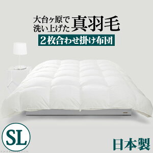 プレミアムゴールドラベル付き。ホワイトダックダウン93%使用の2枚合わせ羽毛布団です。安心の日本製。合掛け羽毛布団と肌掛け羽毛布団の2枚合わせ!春・夏・秋・冬、オールシーズン快適な寝心地をお楽しみ頂けます...