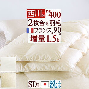 秋得★最大10%OFFクーポン 羽毛布団 セミダブル 西川 2枚合わせ セミダブルサイズ 『増量1.5kg』 フランス産ホワイトダウン90% DP400 羽毛ふとん 綿100% 洗える 日本製 1年中...