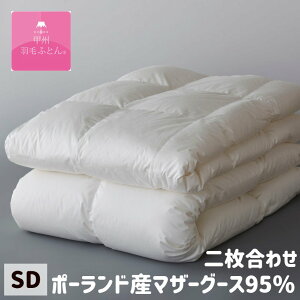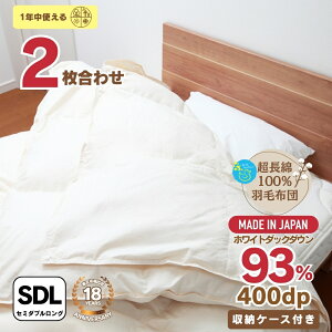 羽毛布団 2枚合わせ セミダブル ダウン93% DP400 日本製 ロマンス小杉 羽毛ふとん 綿100% 掛け布団 オールシーズン 1年中 2枚合せ 増量 合い掛けのみ肩口増量 洗え。