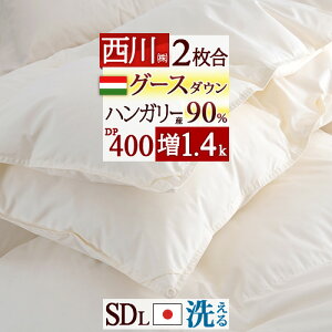 全品P5&最大10%OFFクーポン★[20日16時~8H] 羽毛布団 2枚合わせ 西川 セミダブル グース 増量1.4kg セミダブルサイズ ハンガリー産グースダウン90% DP400 軽量生地 洗える...