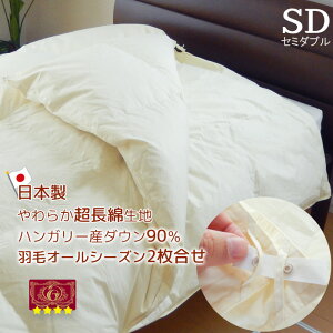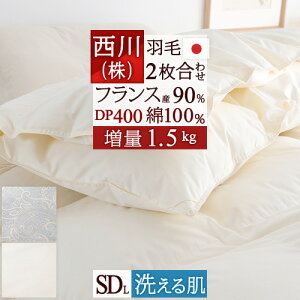 秋得★最大10%OFFクーポン 羽毛布団 セミダブル 西川 2枚合わせ セミダブルサイズ 『増量1.5kg』 フランス産ホワイトダウン90% DP400 羽毛ふとん 綿100% 洗える 日本製 1年中...