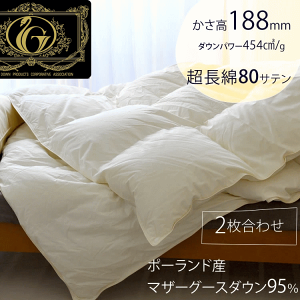 【特徴】・ロイヤルゴールドラベル・2枚合わせでオールシーズン使える・高品質羽毛産地のポーランド産・ホワイトダックダウン93%、ダウンパワー400以上・暖かさを逃がさない、冷気を侵入させない立体キルトを採用...