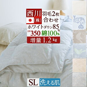 ~8H] 羽毛布団 西川 シングル 2枚合わせ 『増量1.2kg』 綿100% シングルサイズ ホワイトダウン85% 羽毛ふとん DP350 ぬくもり仕上げDX 日本製 一年中 肌のみ洗える 羽毛掛け布団...