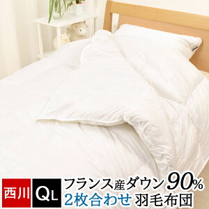 全品P5&最大10%OFFクーポン★[20日16時~8H] 羽毛布団 西川 クィーン 2枚合わせ 『増量1.9kg』 抗菌 クイーンサイズ フランス産ホワイトダウン90% 羽毛ふとん DP400 日本製...