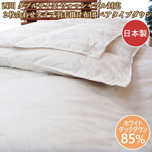 西川 ペアタイプ 2枚合わせ羽毛布団 ダブルサイズ ツインダウン 調整できる 合い掛け 肌掛け ダブル。