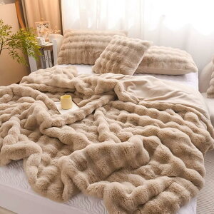 ・2枚合わせのあたたかさと、とろける肌触りのおしゃれな毛布 ・外側はふわふわとした触り心地のラビットファー調生地、内側は肌ざわりよく滑らかなフランネル調生地を使用。 ・ふんわり柔らかく、しっとりとした肌触りに癒され、心も