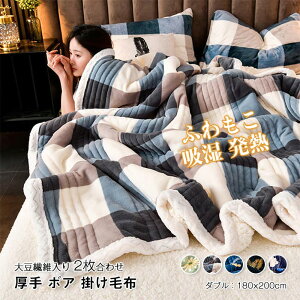 発熱 二枚合わせ毛布 掛け布団 毛布布団 シープ調 ボア 冬| あっ